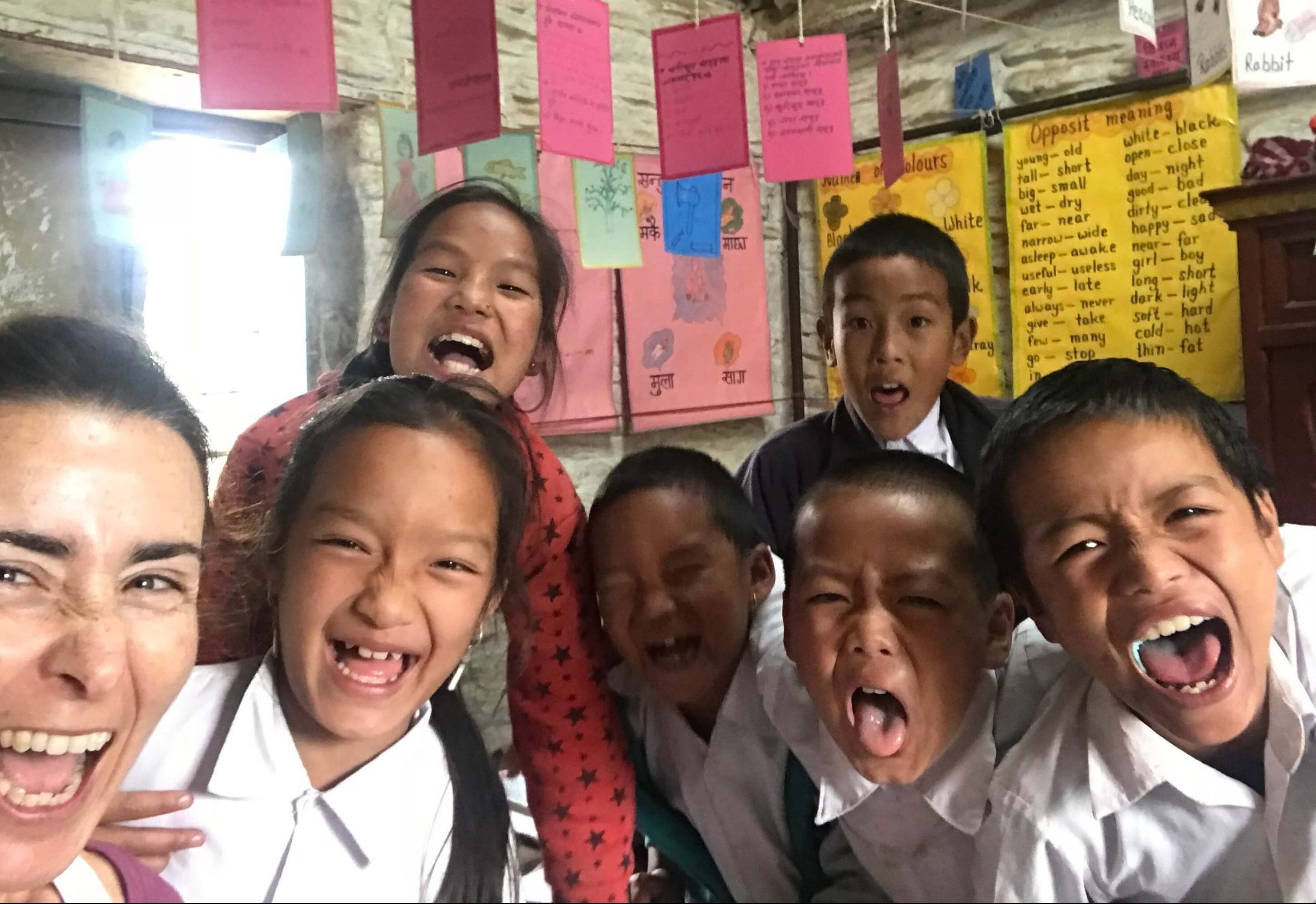 «Cada uno aportábamos los que podíamos. A mi me tocó dar clases de inglés en el colegio a los niños». «Hablaban poquito inglés pero eso no fue dificultad alguna, nos entedíamos. Les encantaba enseñarme nepalí y se morían de risa al oírme pronunciarlo».